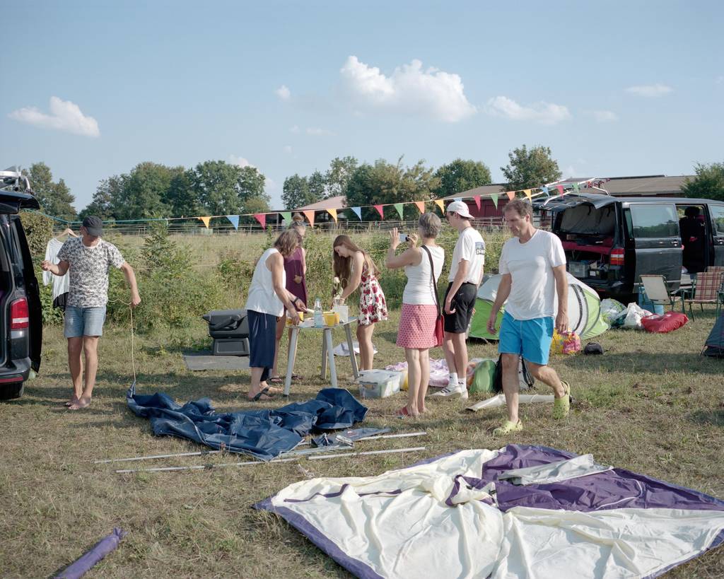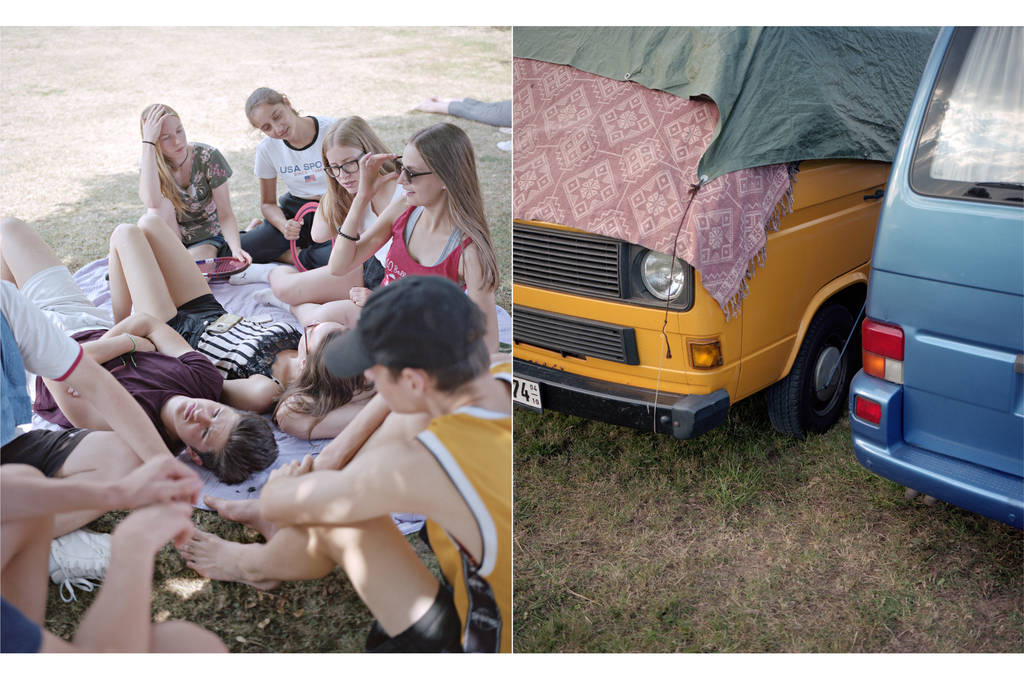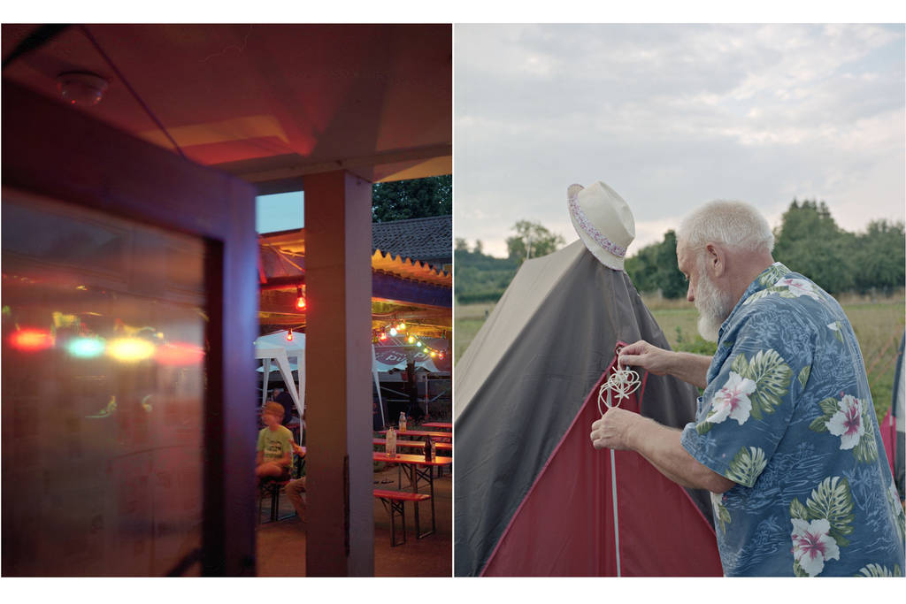 befreundeten Familien ausTübingen baut ihr Lager auf. Die Tochter feiert hier ihren Geburtstag. Viele Familien kommen seit Jahren regelmäßig zum Filmfest - auch um Freunde und Bekannte zu treffen.