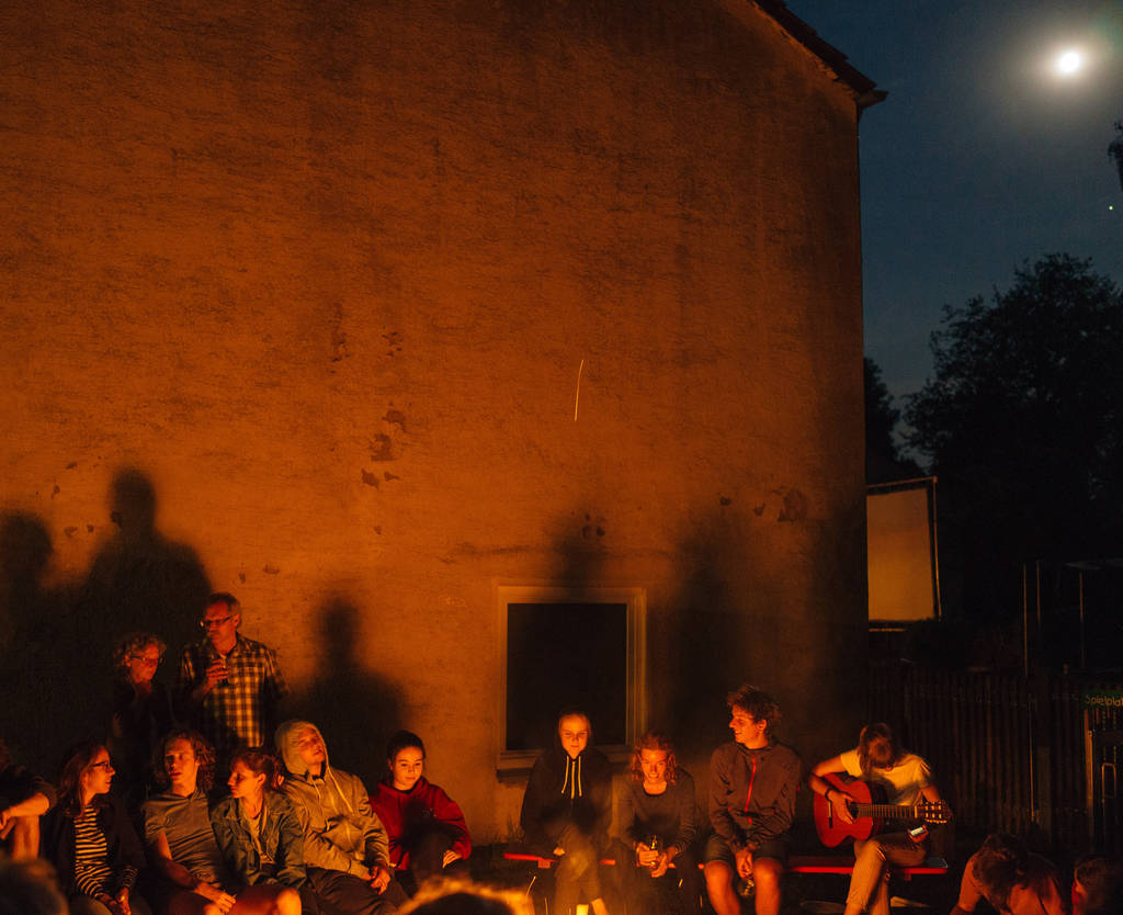 Am Lagerfeuer wird bis spät in die Nacht diskutiert, musiziert und gefeiert.