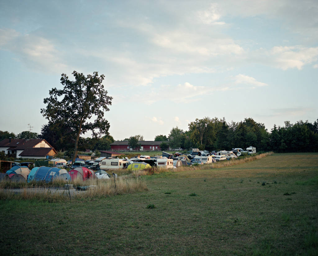 der Festivalbesucher stehen auf einer Wiese direkt neben der Schule. Seit 40