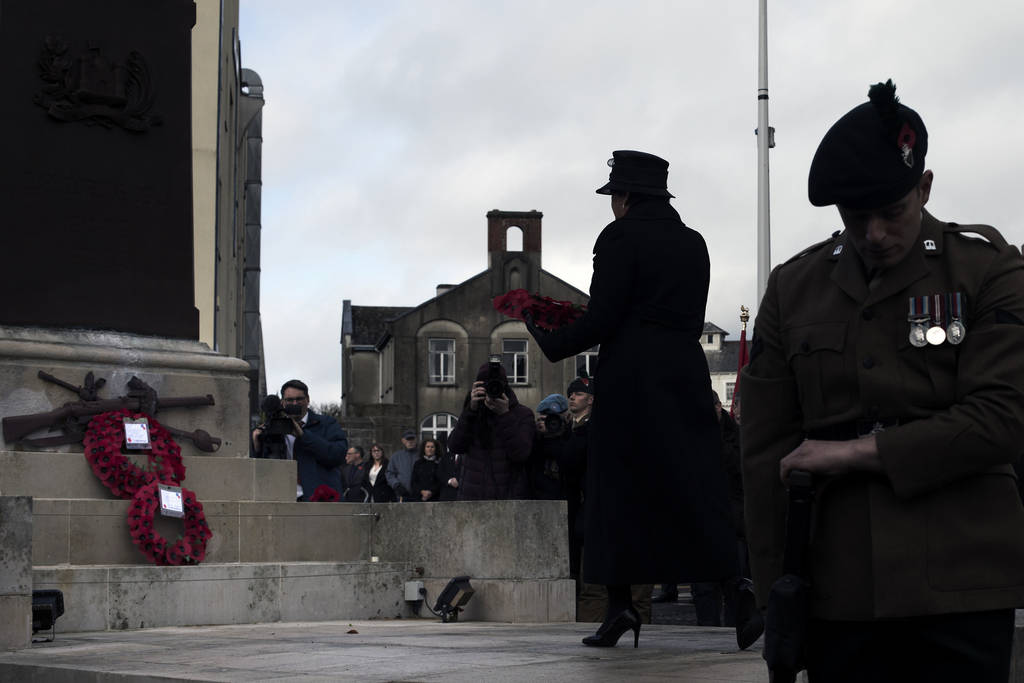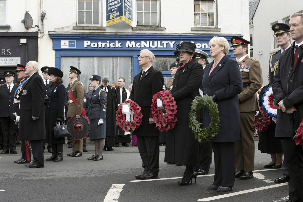 Am Kriegsdenkmal legen prominente Politiker Kränze ab. Die roten Mohnblumen ("Remembrance Poppies") symbolisieren das Gedenken an die Gefallenen des Ersten Weltkriegs. In Nordirland werden sie häufig als protestantisch-unionistisches Symbol gedeutet. Deswegen tragen sie nur wenige Katholiken.