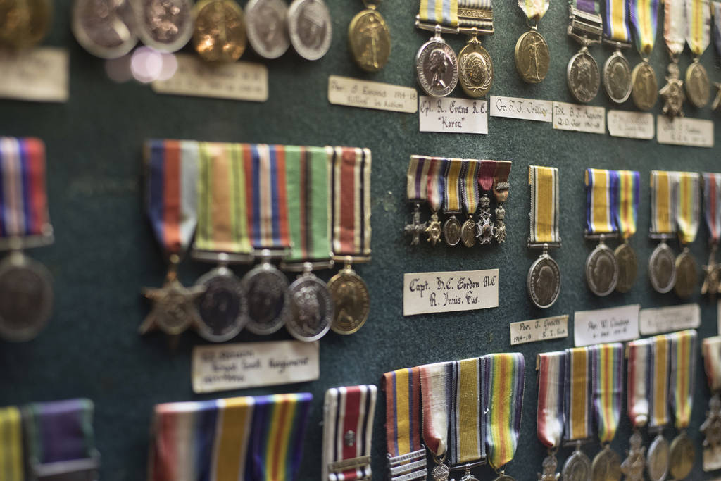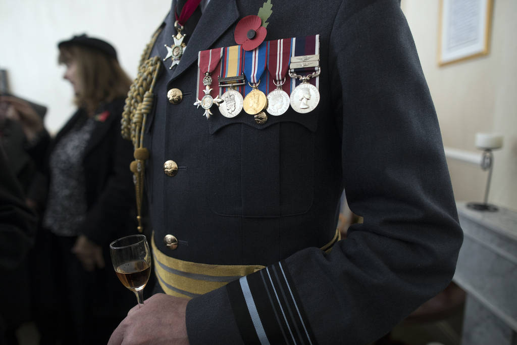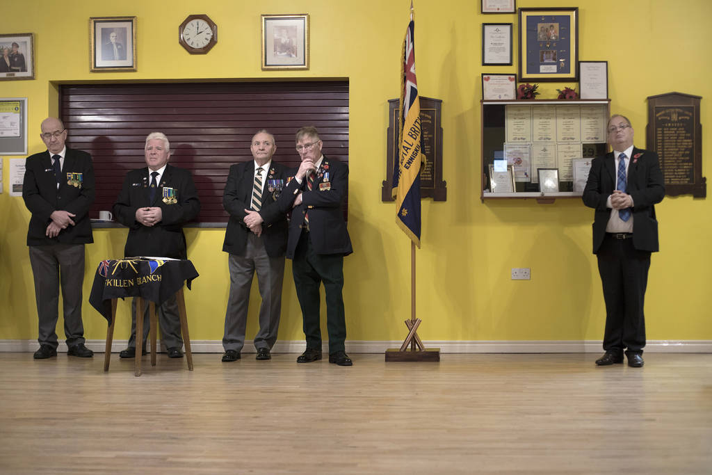 Im Clubhaus der unionistischen Royal British Legion kommen nach dem Gedenkgottesdienst Veteranen und Reservisten der britischen Armee zusammen. Zahlreiche Orden, Flaggen und Bilder der englischen Königsfamilie schmücken den Club.